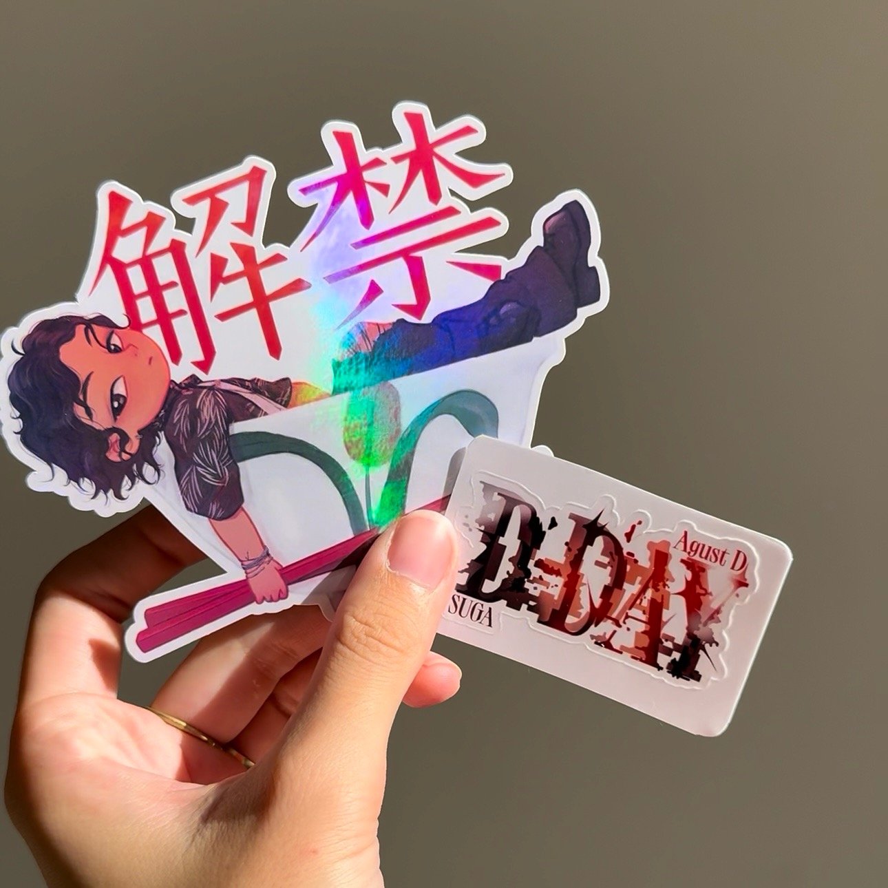 One big vinyl holo sticker and one small vinyl glossy sticker